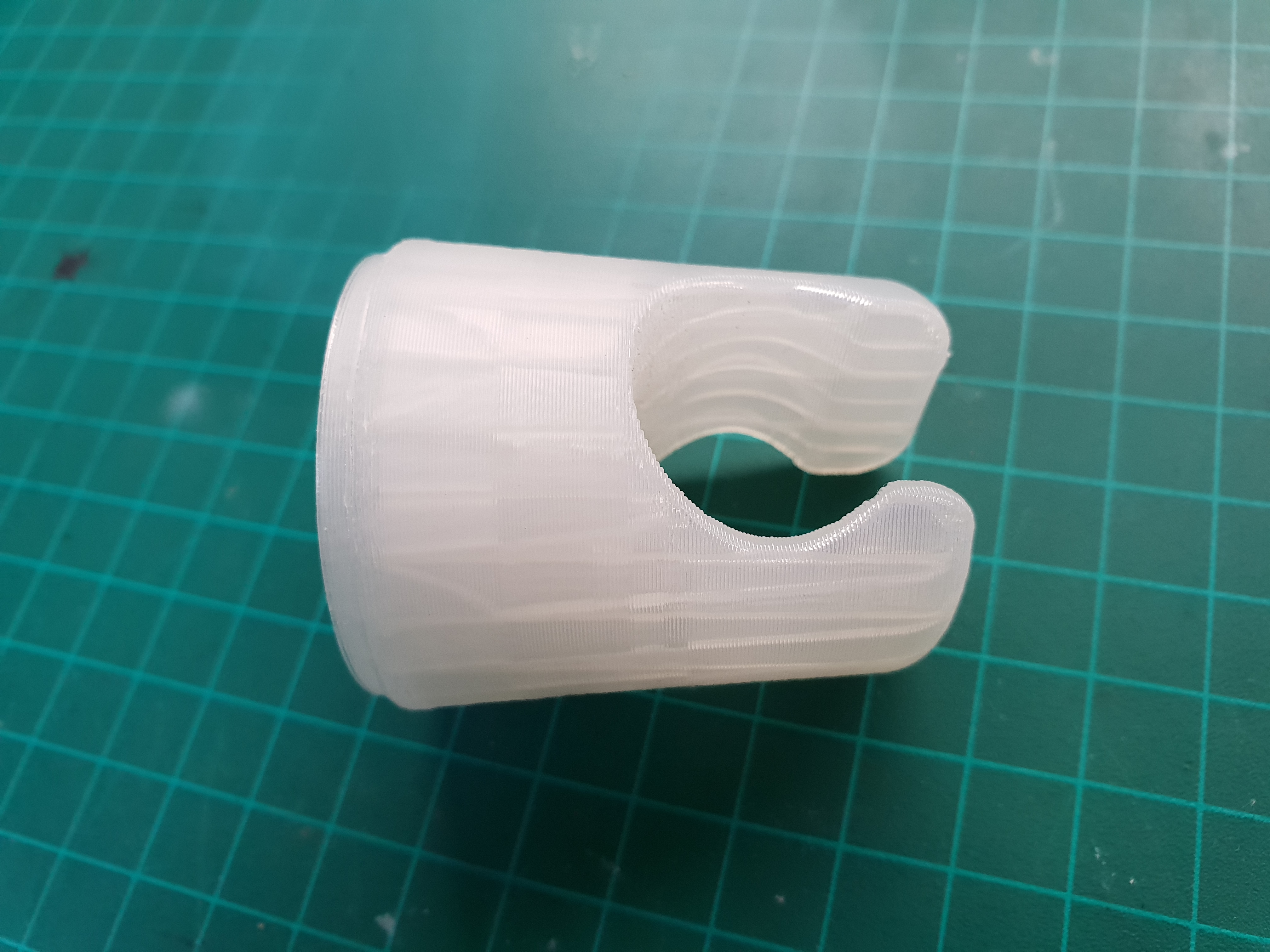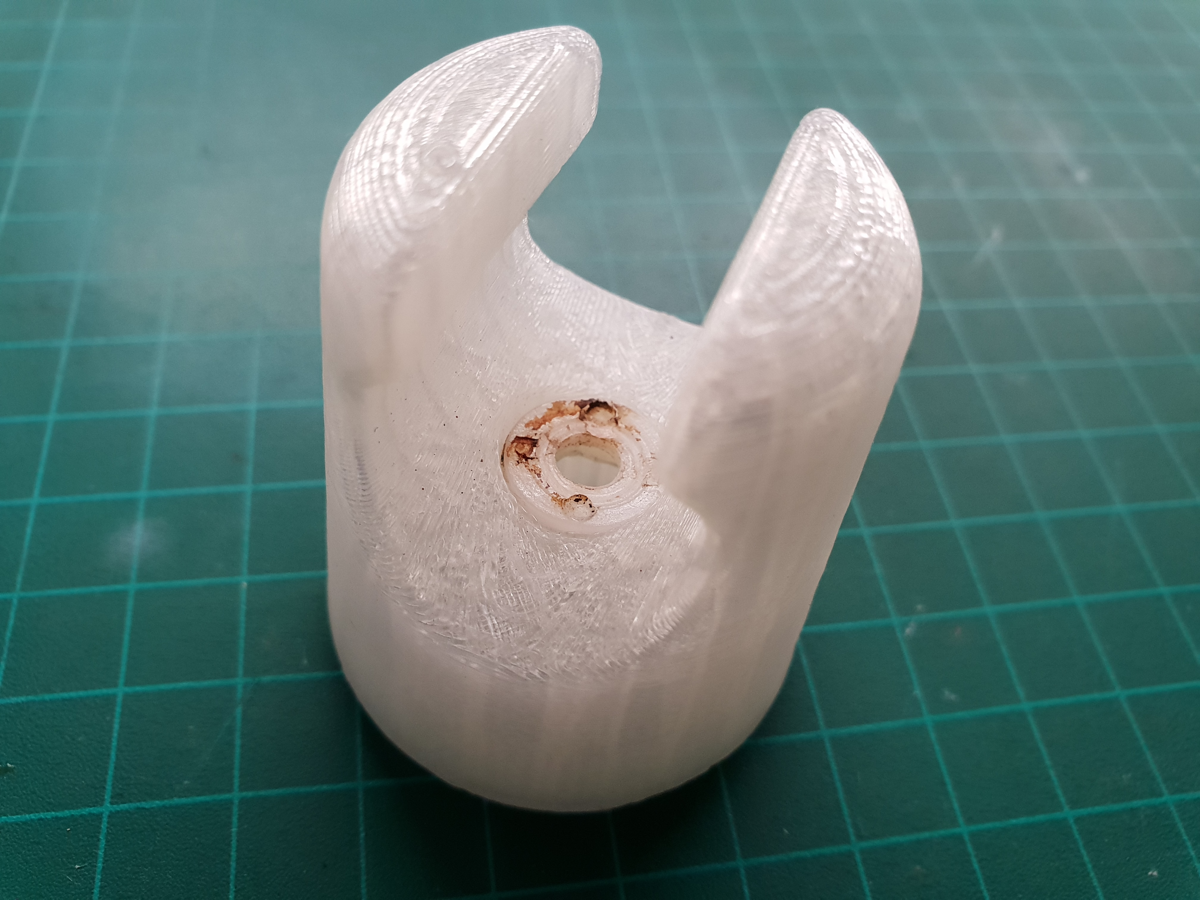 This time the holes were spot on! My guestimations for shrinkage and eyeballing the angle of the cone and size of the hole for the head were perfect. The coupler fits snugly and the bottom ring matches the race.