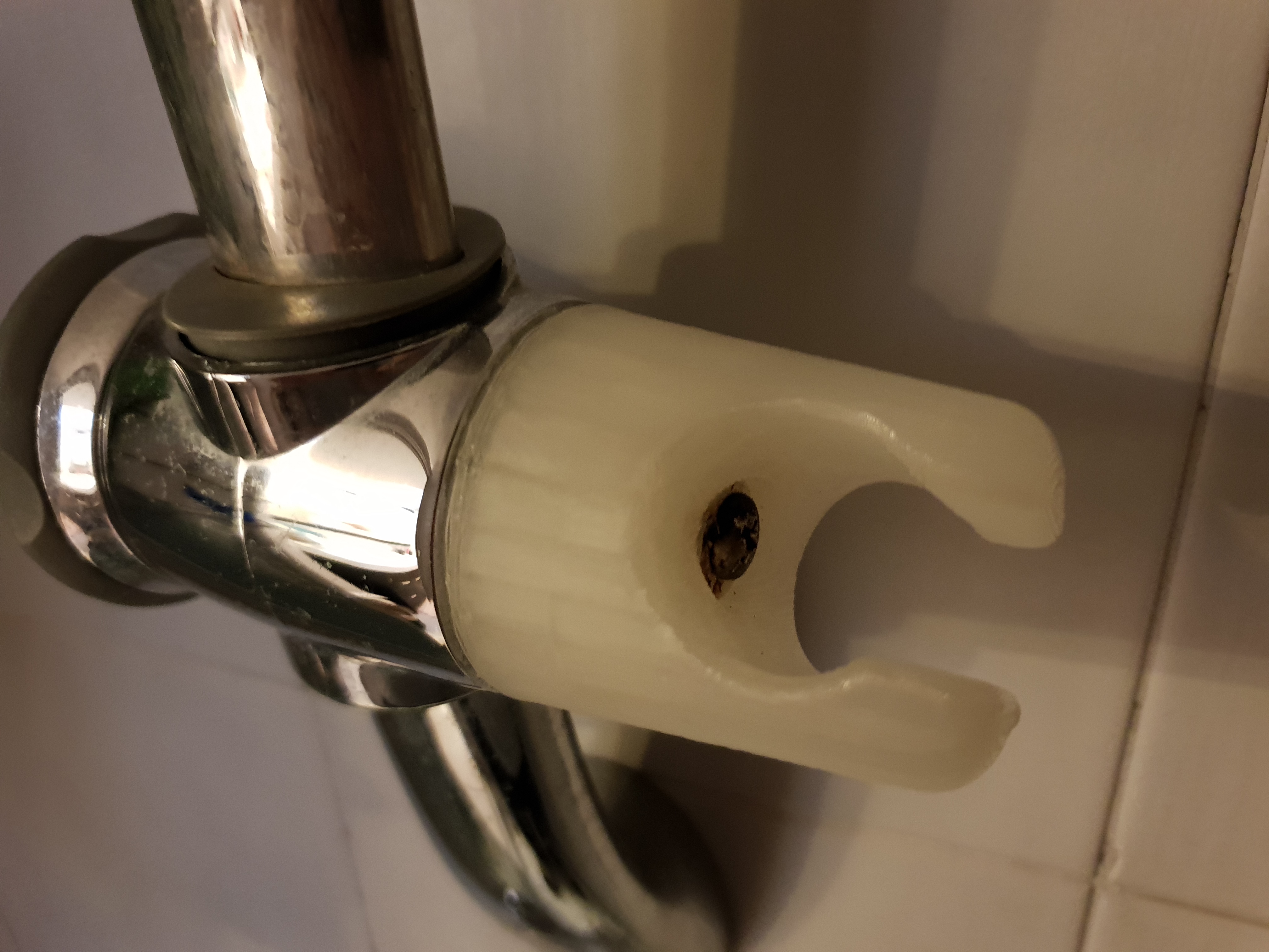 I didn't bother uploading the file because there's a very slim chance this will fit any other shower head holder, but if you're reading this and have the exact same product, contact me and I'll send you the .stl and the model.