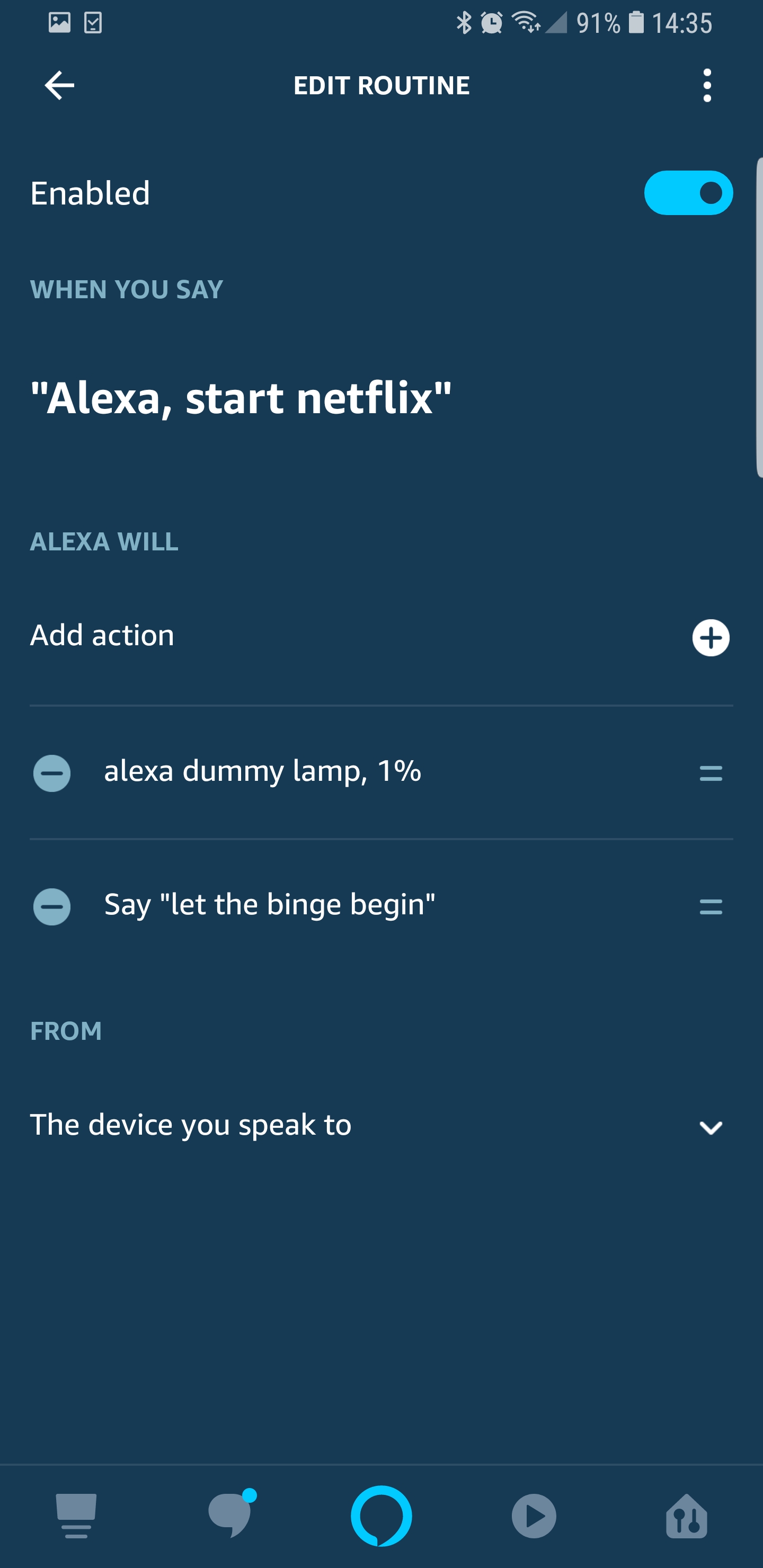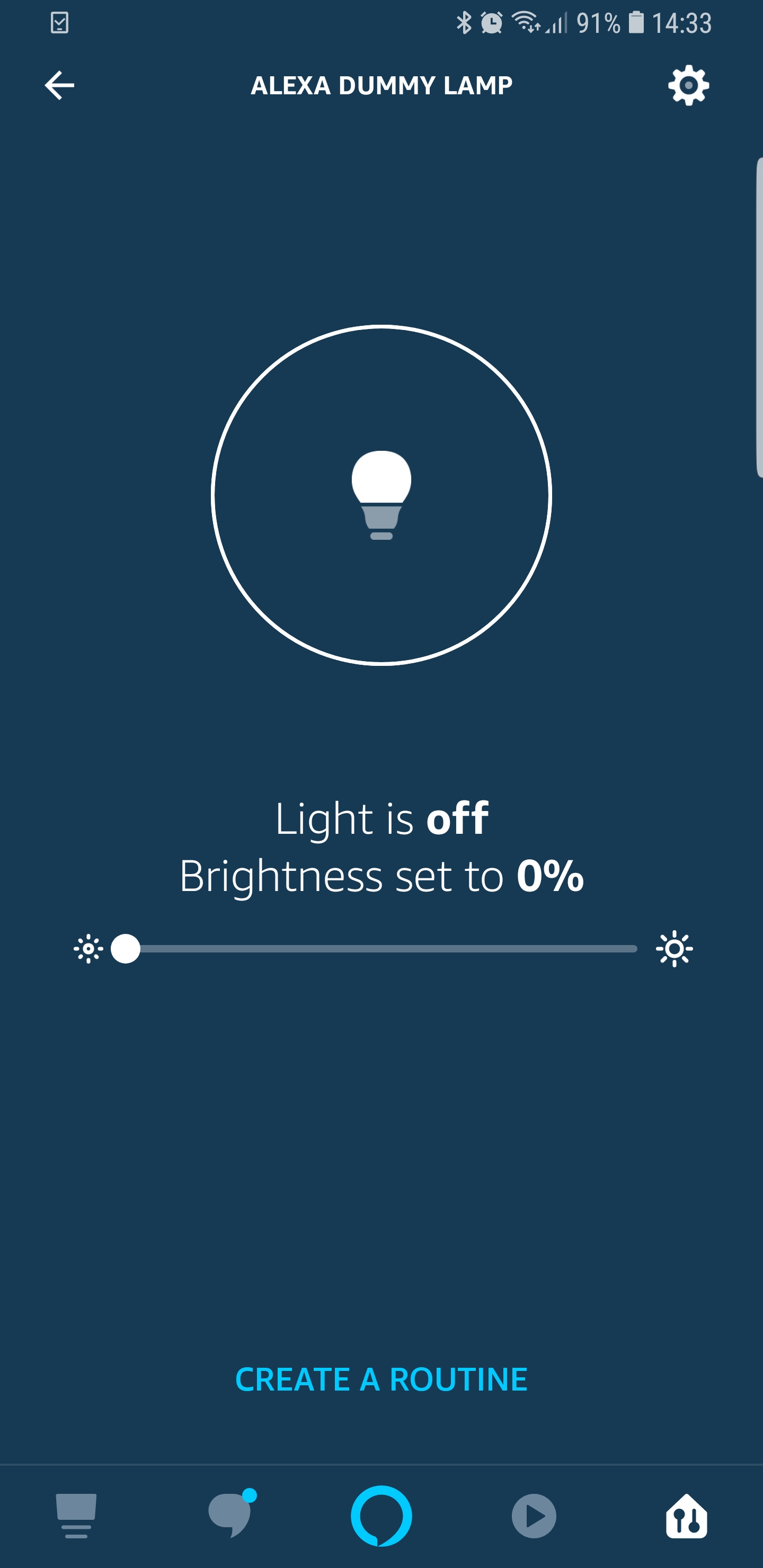 The configuration in the Alexa app is pretty simple. The dummy lamp can be discovered by the app, all we need is to define routines to set the brightness of the light when you command Alexa.