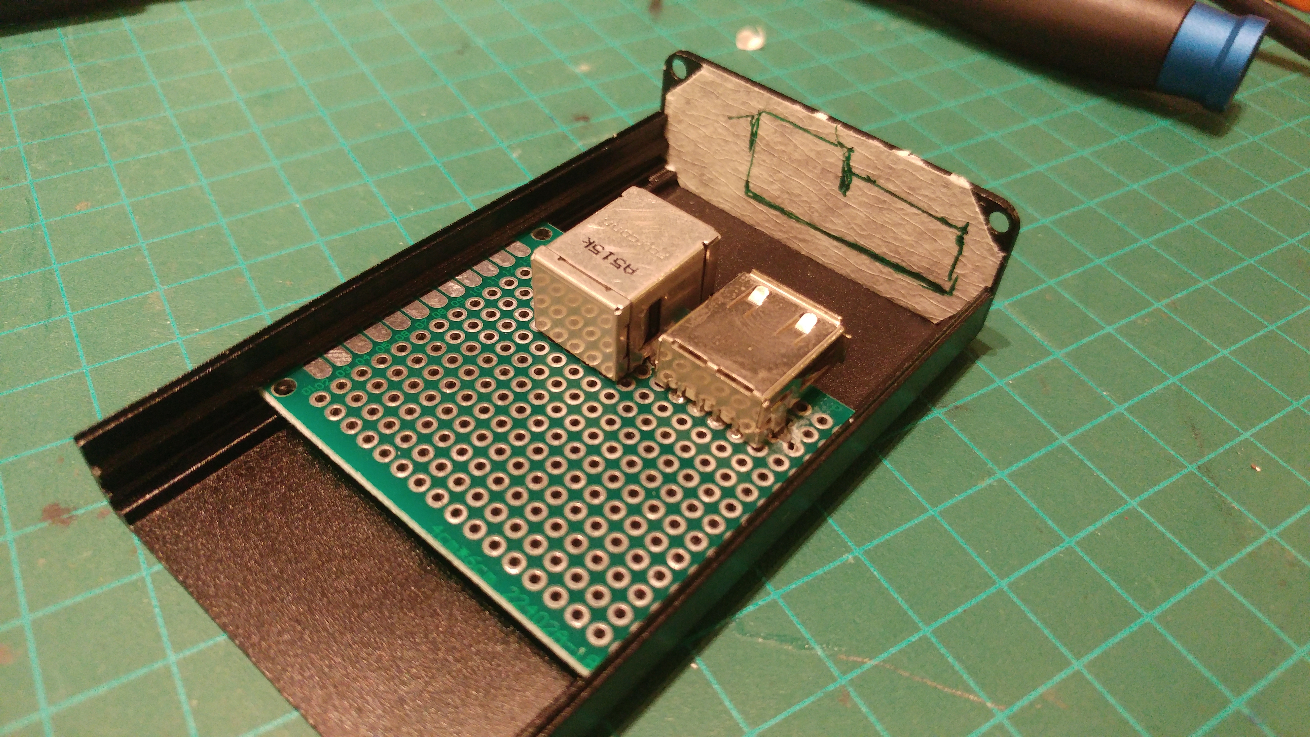 The USB data lines are untouched, going straight through to the other USB connector. I used a type A and type B connectors for the "input" and "output", but there's no difference between the connectors. The circuit is in parallel to the power lines so they can both be used as inputs and outputs.