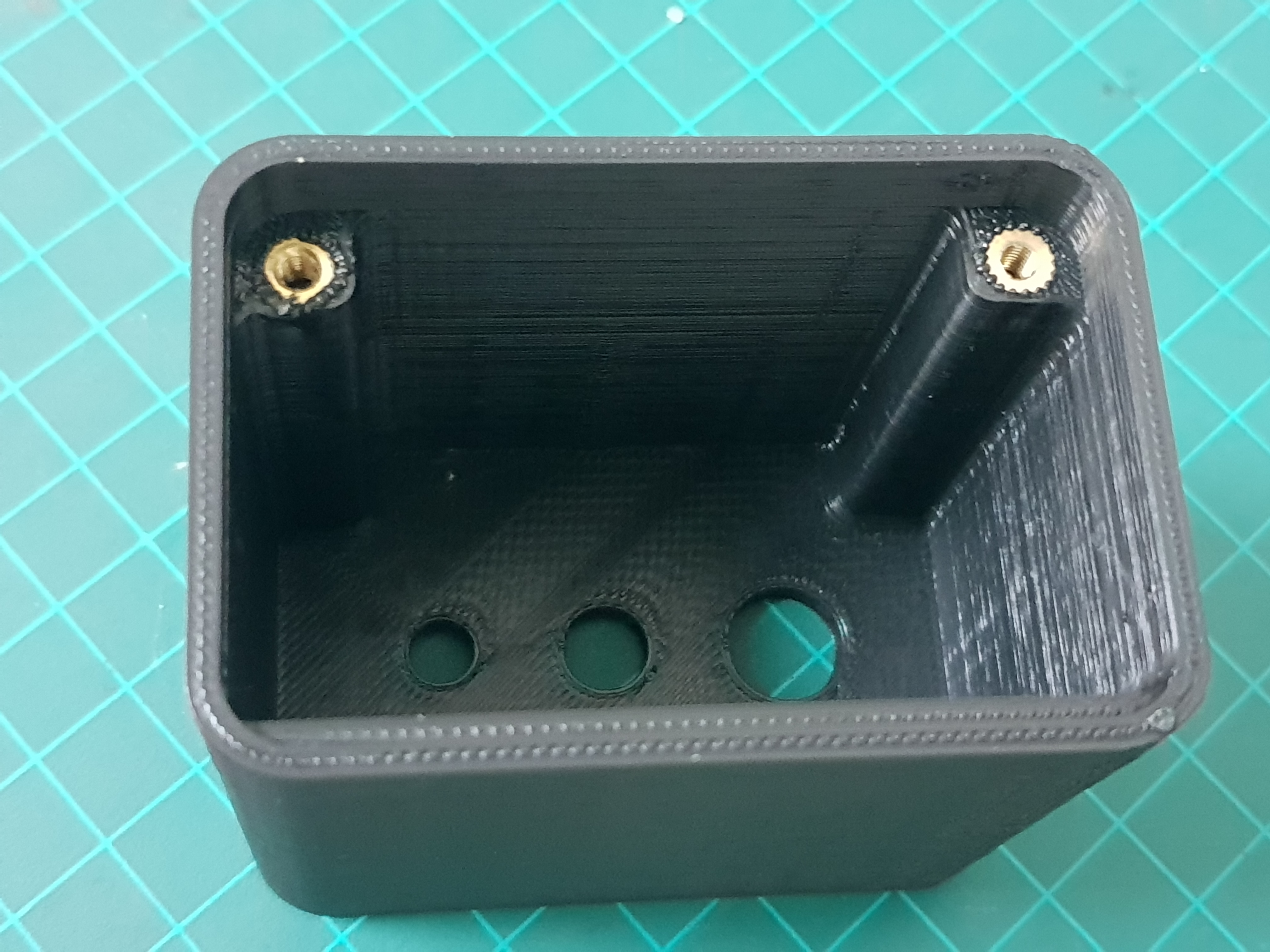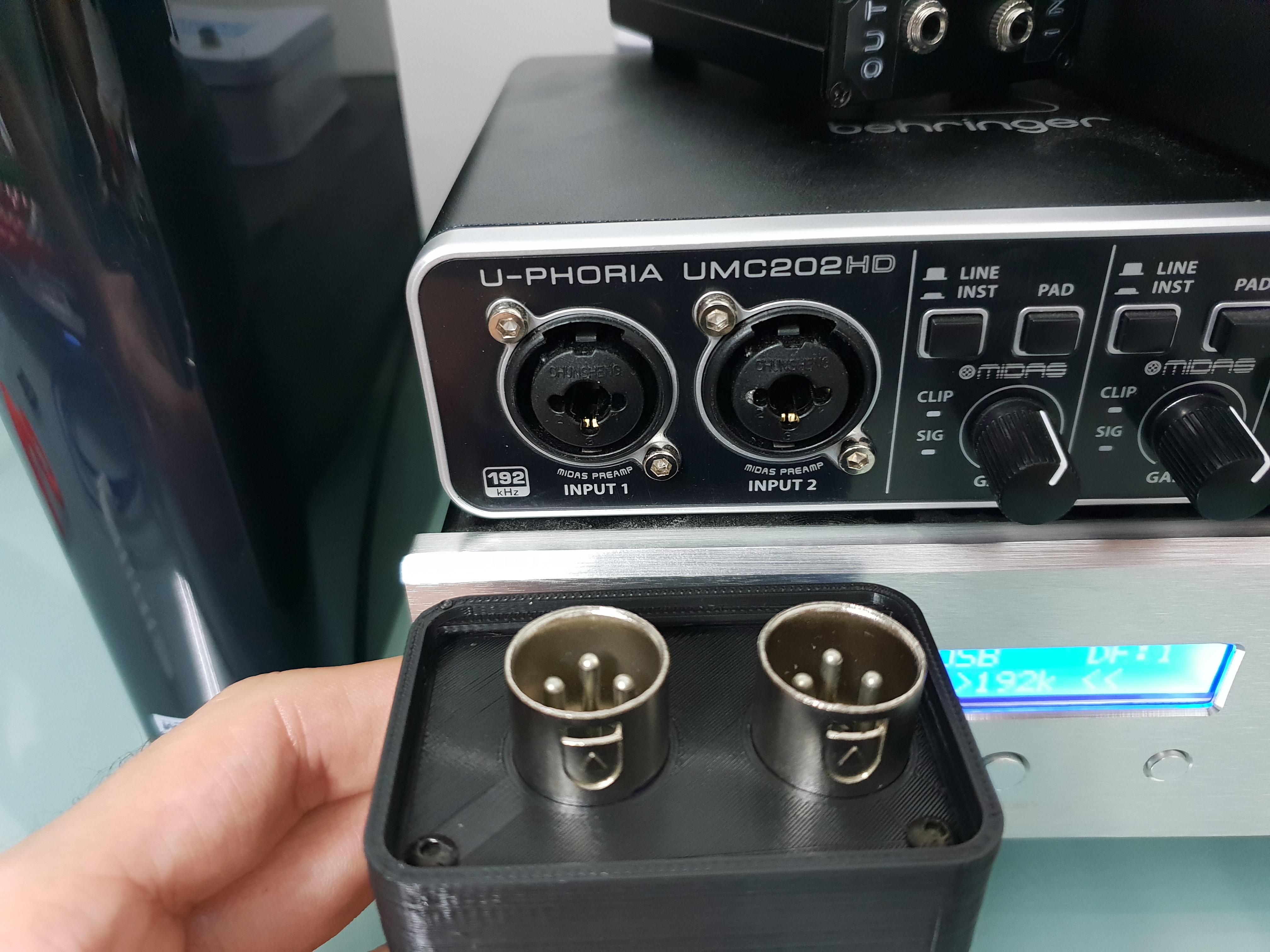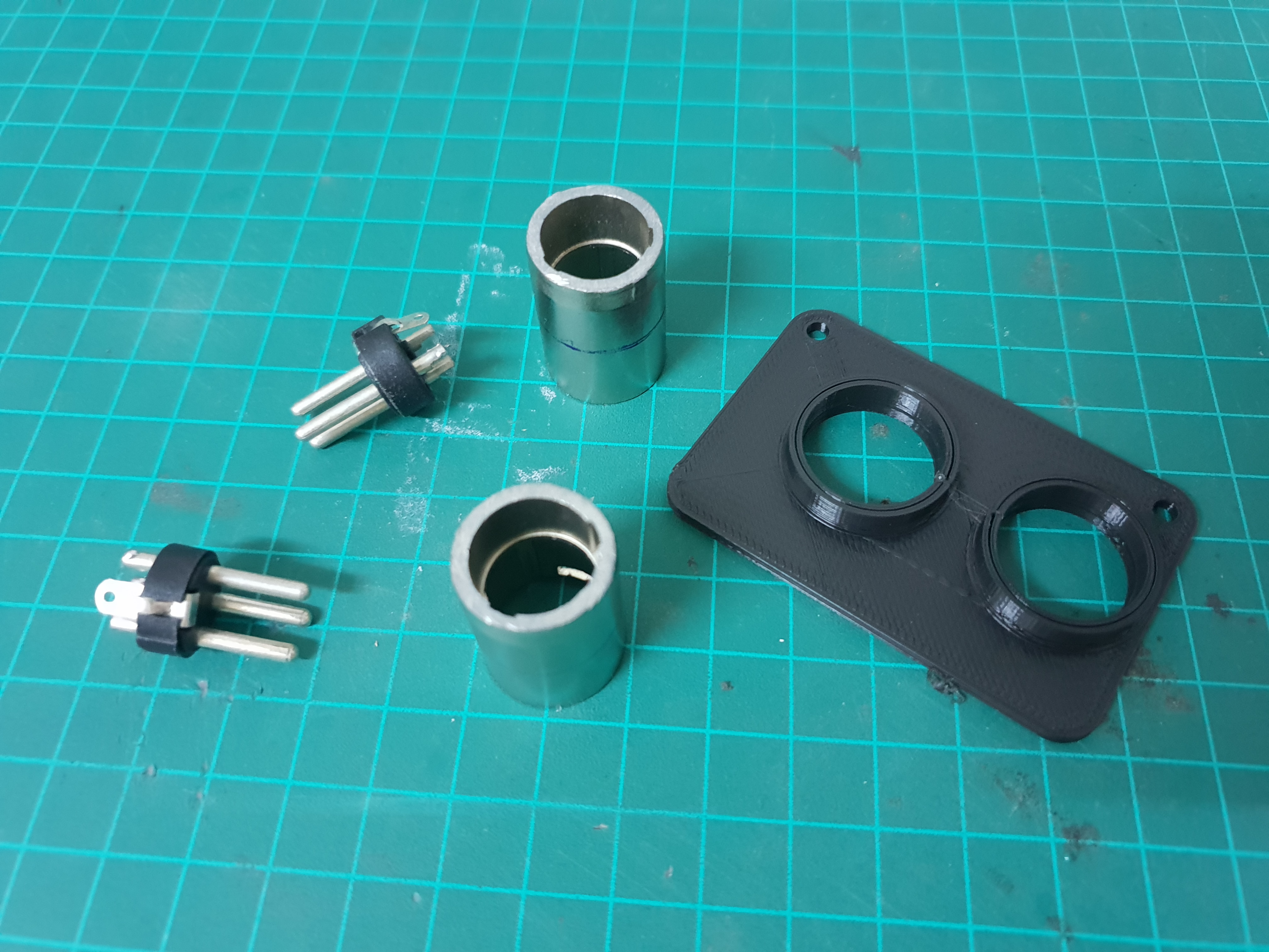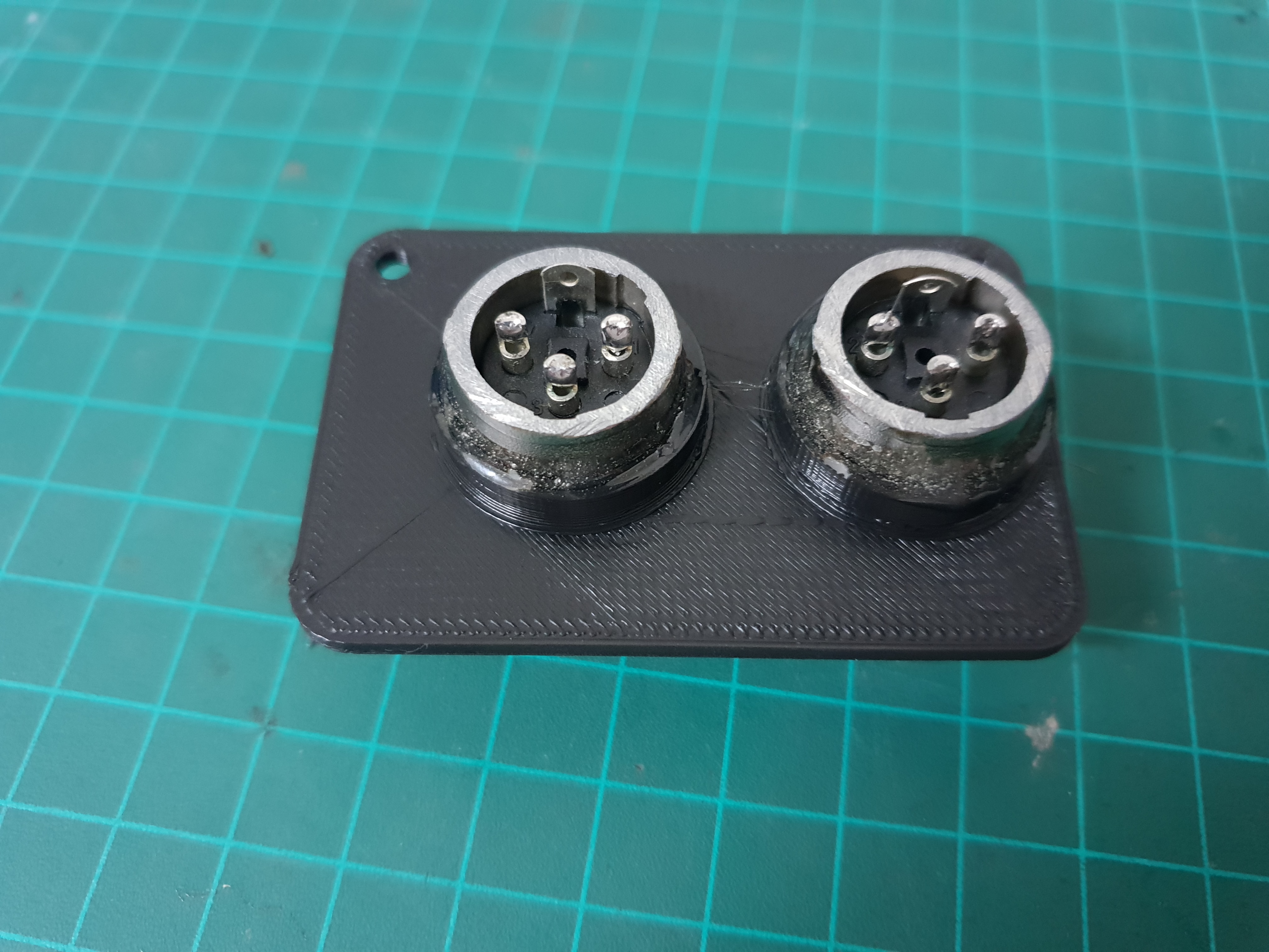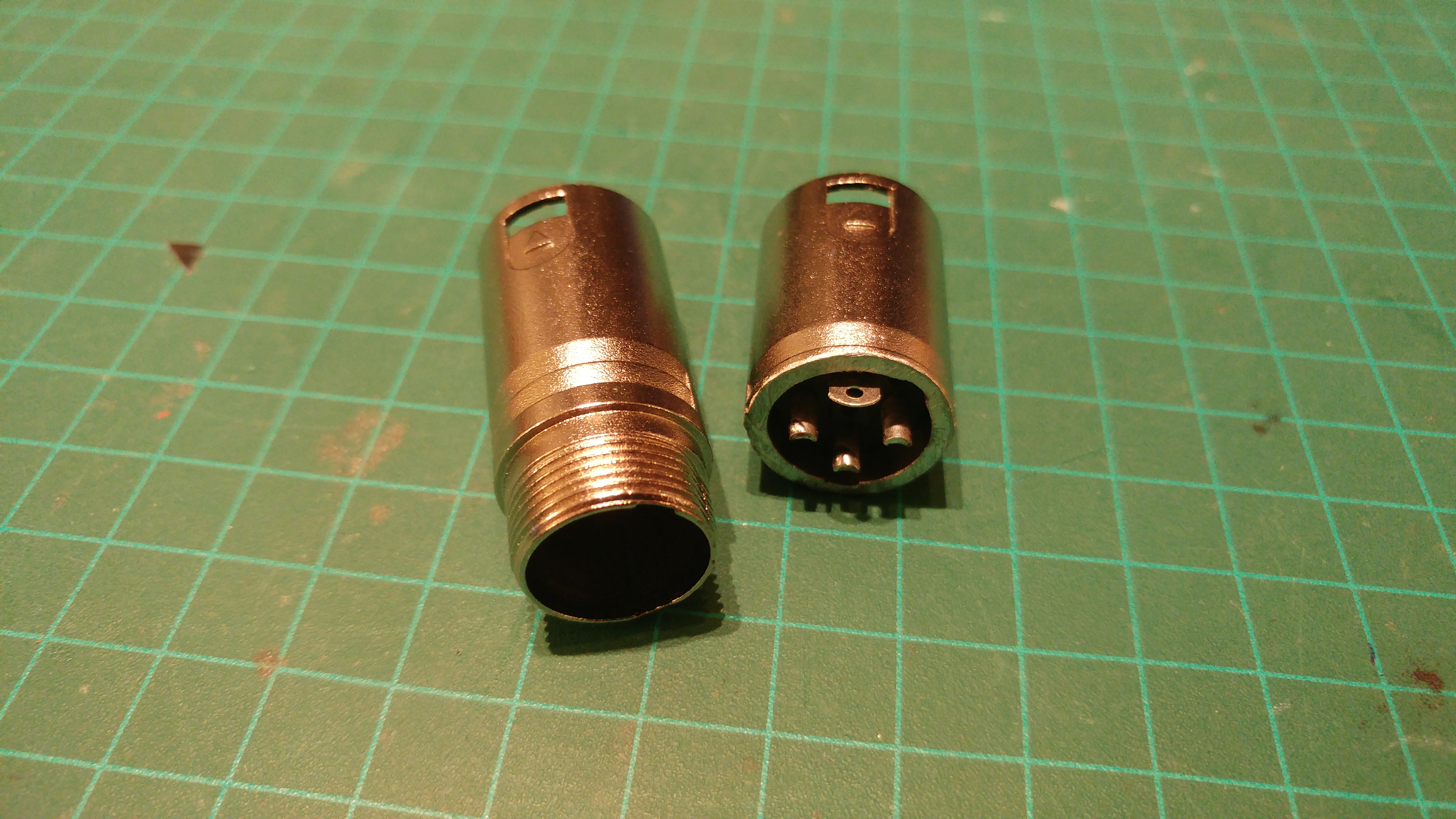The XLR connectors were shortened with a saw to make room inside the box and are glued in place with epoxy.