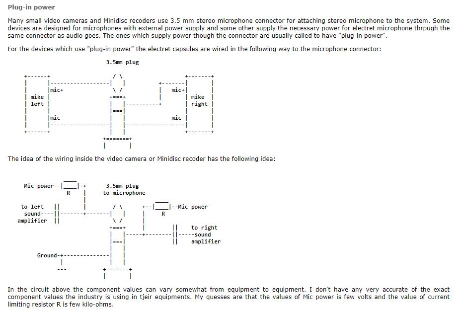 Since I have a stereo condenser microphone designed for voice recorders and cameras, I think it was only appropriate to use the example for plug-in power for those devices.