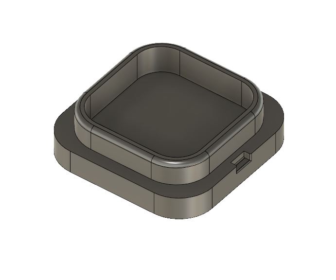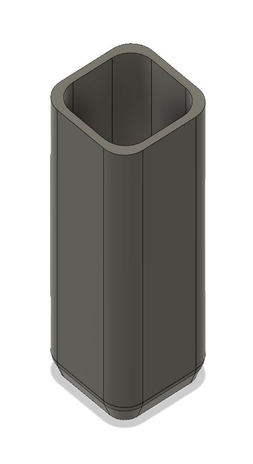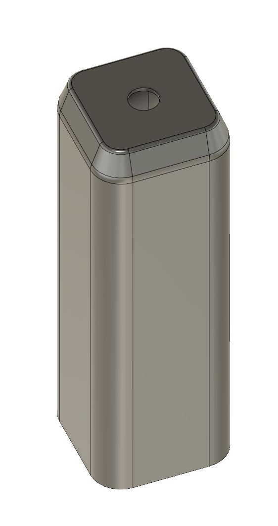 The case is just a square tube with one side closed, a hole for the button and a friction fit bottom cap with notches for a screwdriver if it came out too tight. I threw some fillets for smoother printing and more comfortable fit in the hand.
