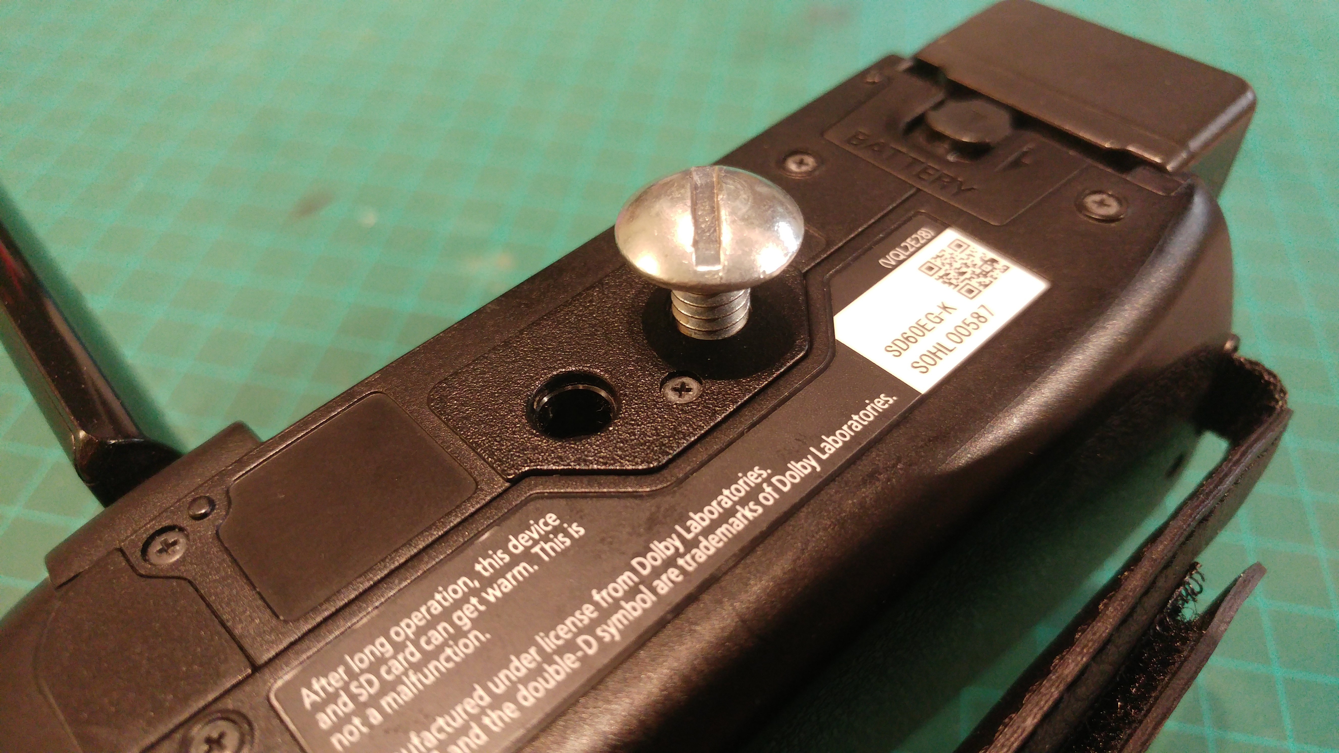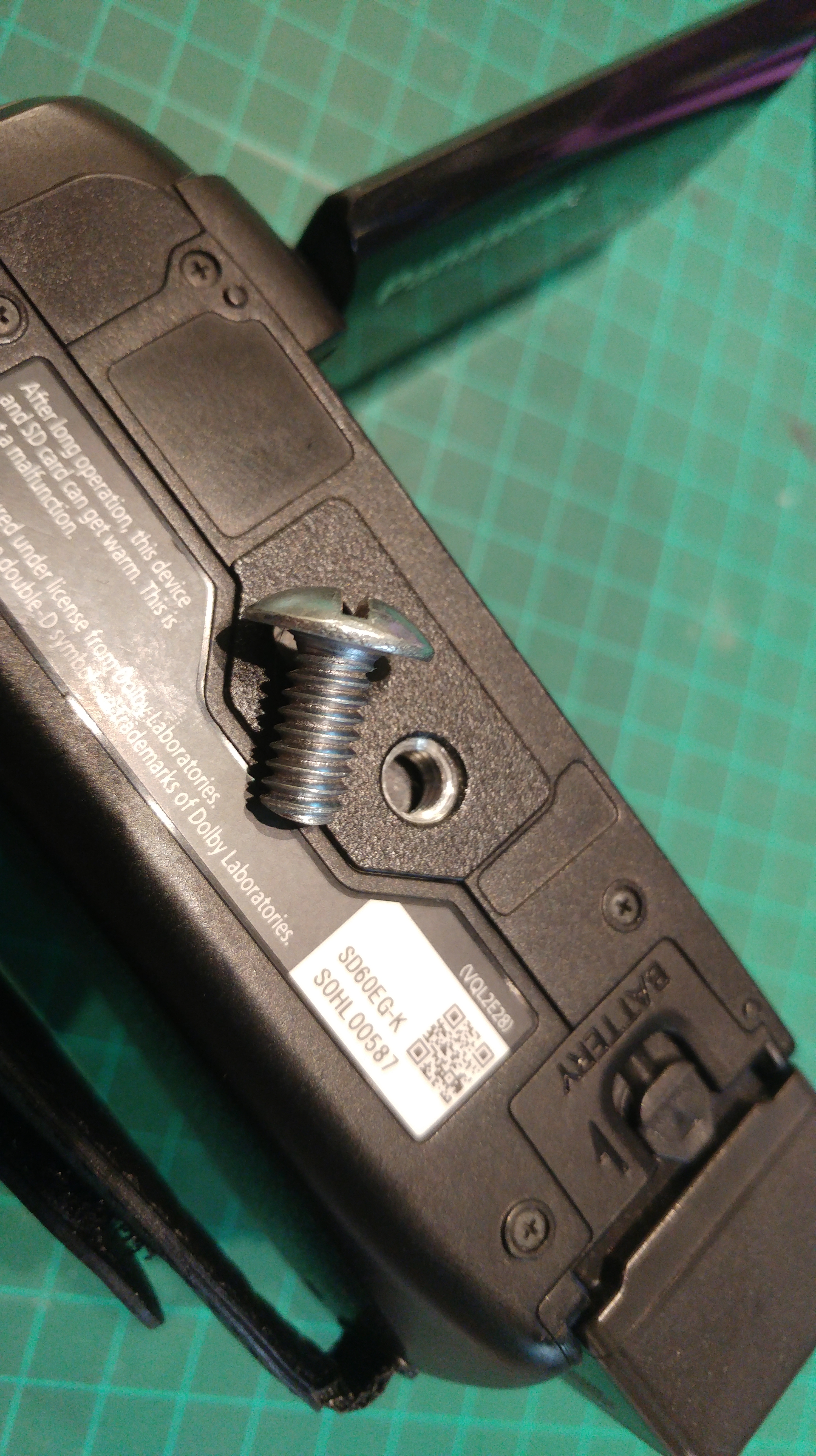 Fortunately, tripod screws are common 1/4", so a generic short one did the job nicely. I left enough opening in the clamp so that I could turn the screw without taking the inner part out.