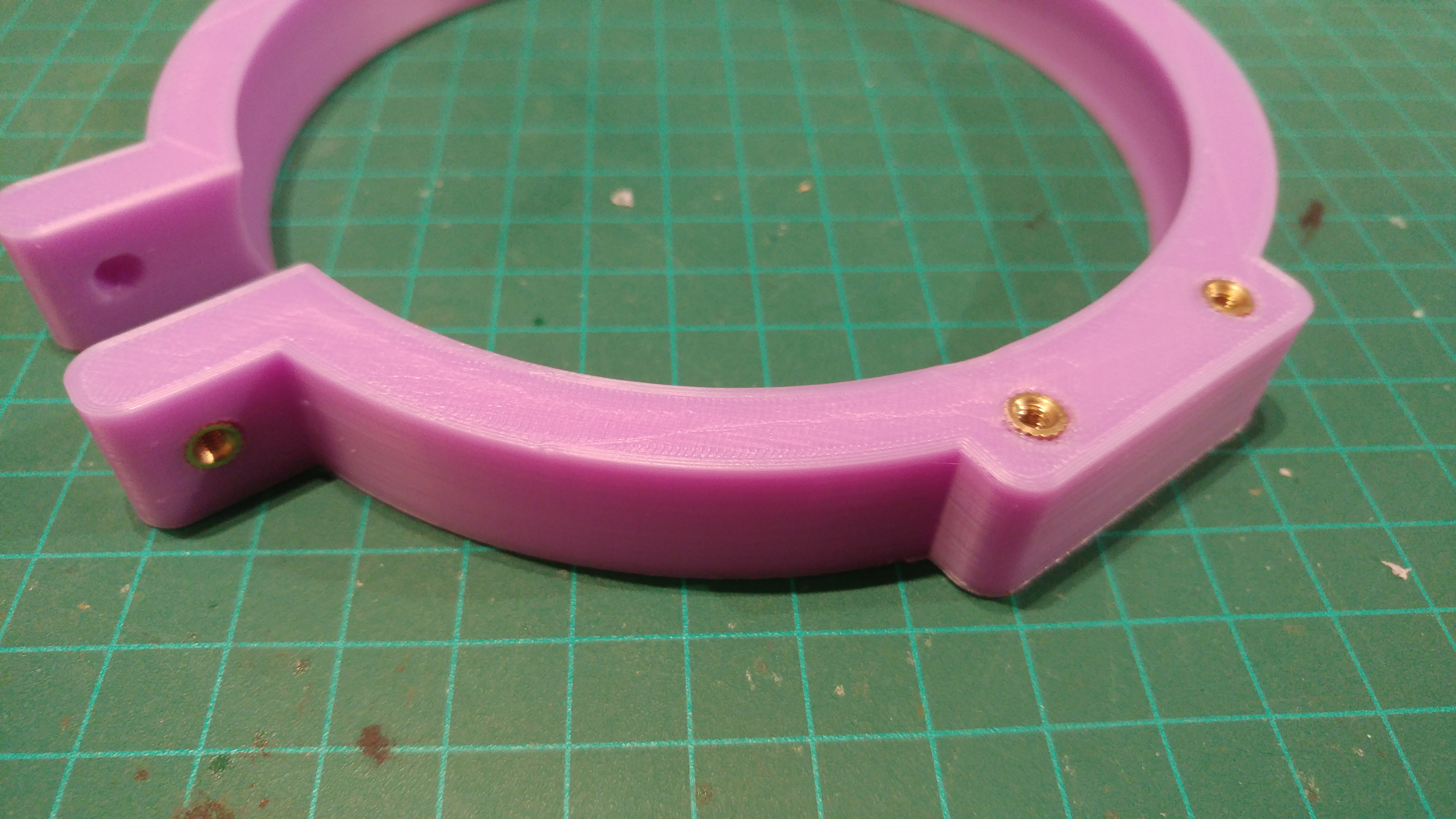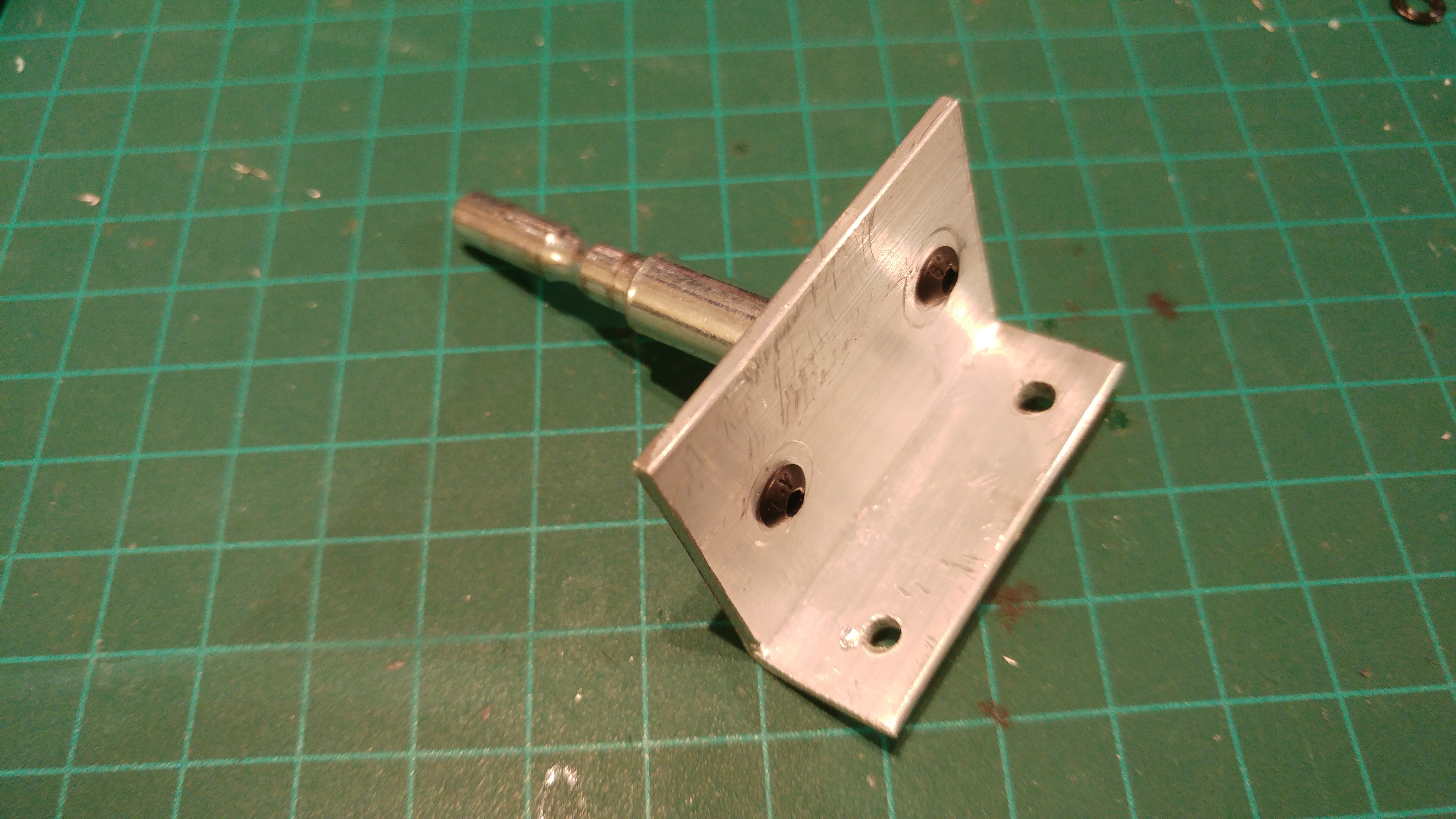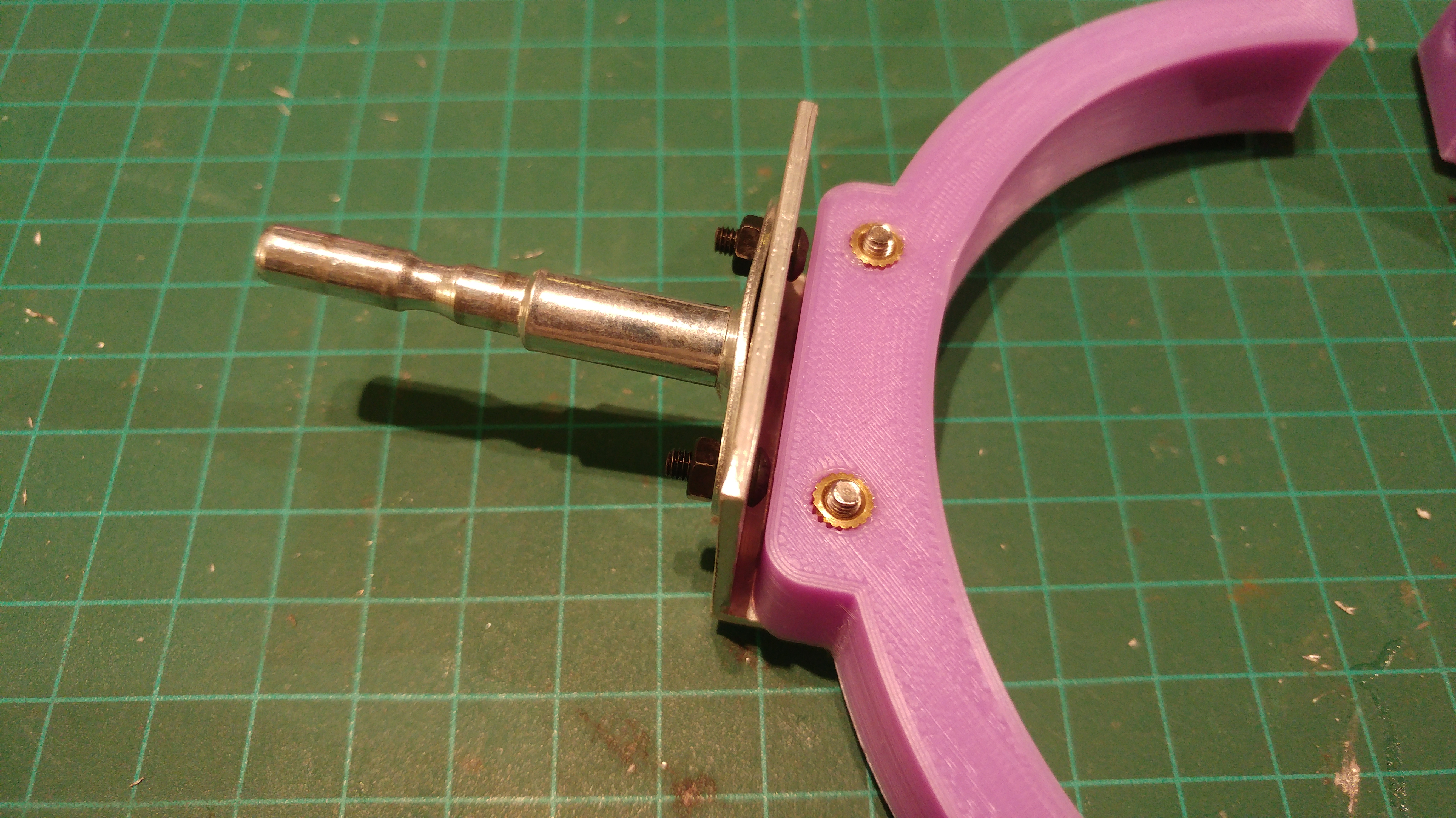 In order to mount the clamp to the arm, I drilled some holes in a piece of angled aluminium to fit the original rotating mount and the clamp.The printed part was fitted with 5mmX5mm M3 knurled nuts that were installed using a soldering iron.