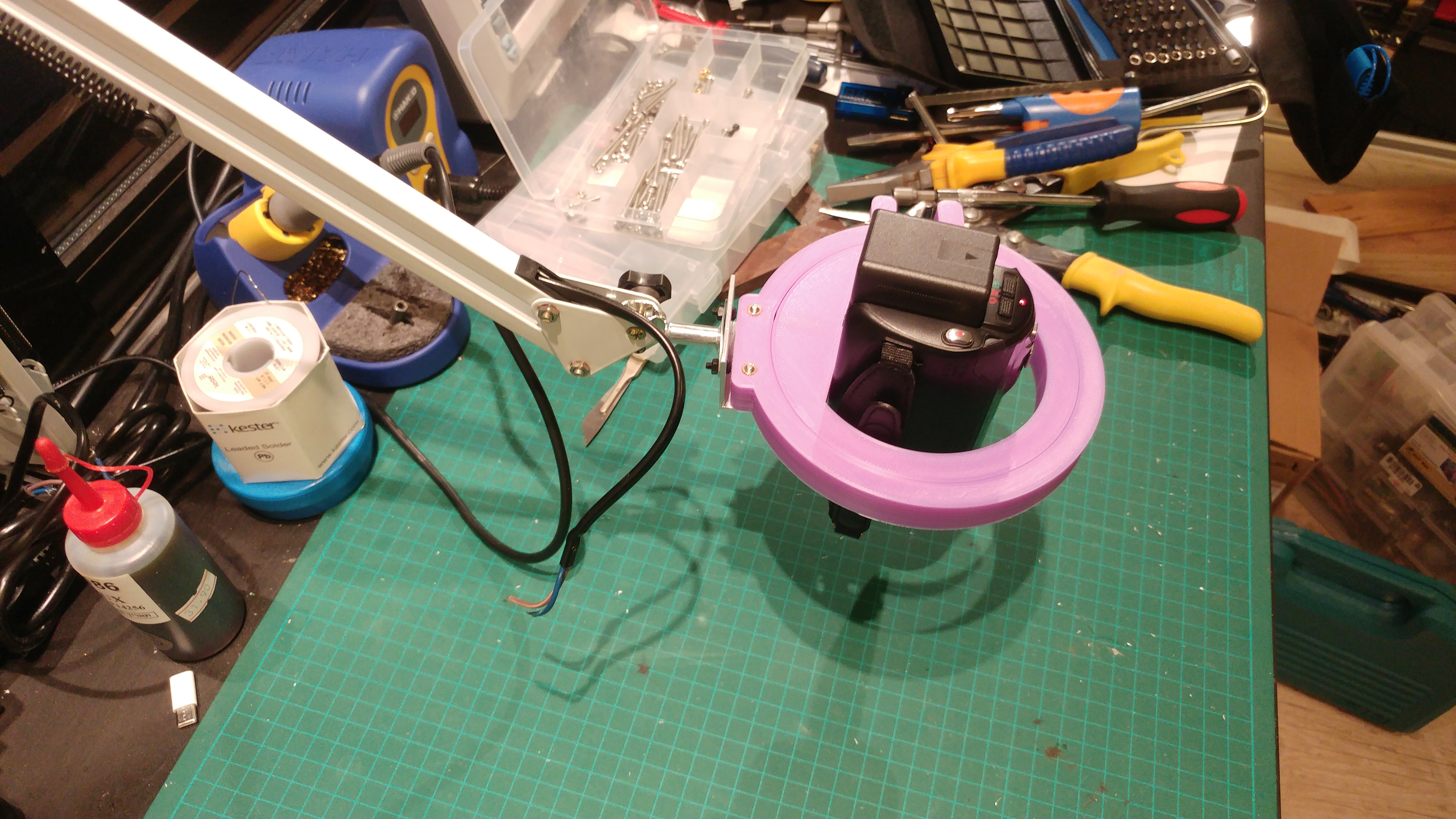 I left the wires from the original lamp and i'll use them to power an LED ring later and maybe charge the camera.